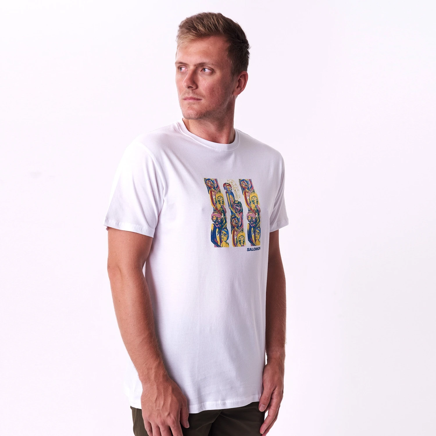 Short sleeve men’s tee shirt with Salomon graphic.