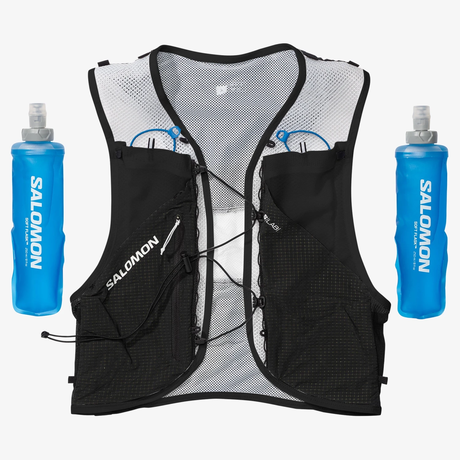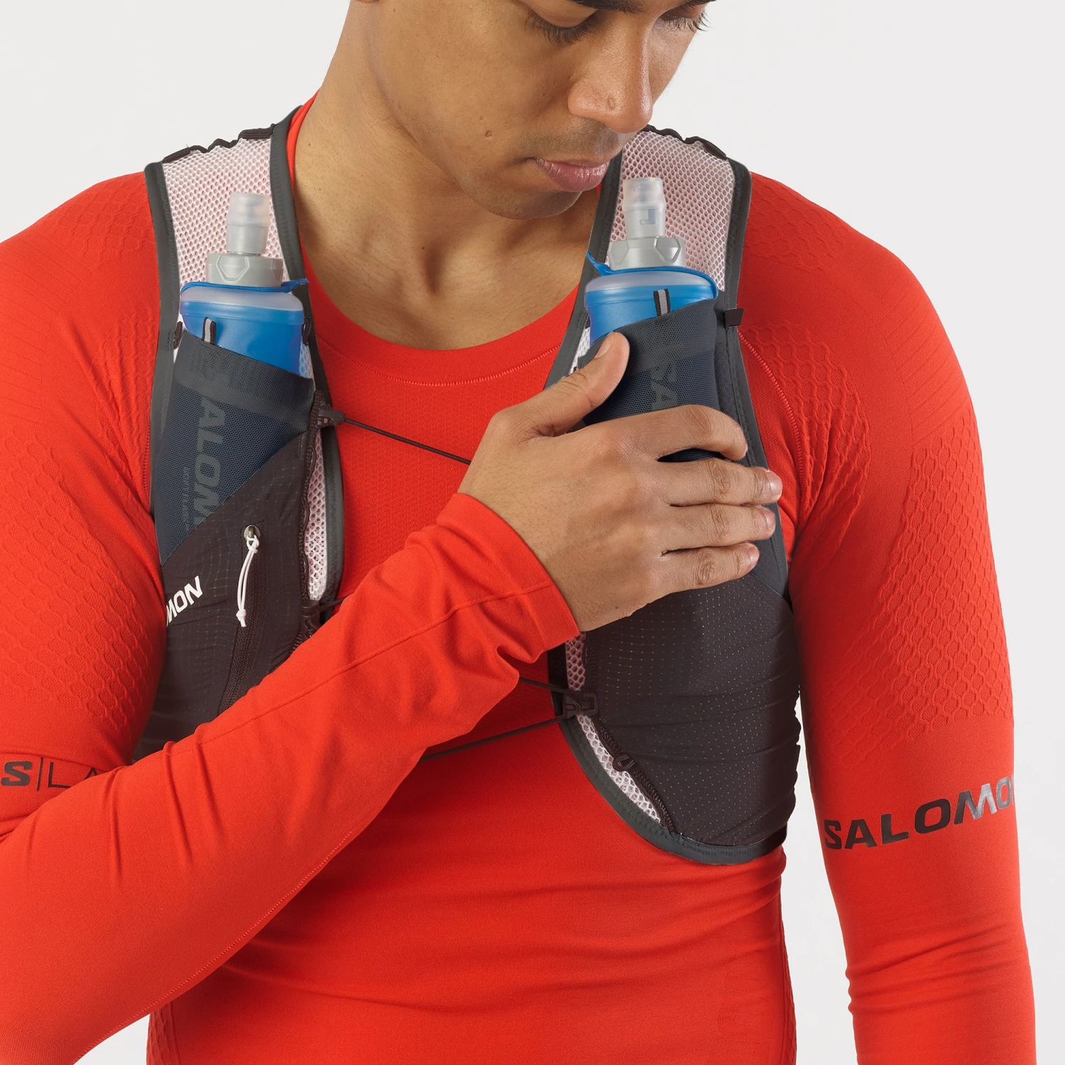 S/LAB PULSAR 3 is our minimalistic lightweight hydration vest ideal for shorter runs. Modular, curated storage options offer quick, easy access to hydration on-the-fly. Two pockets in the front include 250 ml soft flasks and a hybrid back pocket can store a 500ml flask or a jacket. Extra snug and stable thanks to Sensifitâ„¢ and Quick link fastening.